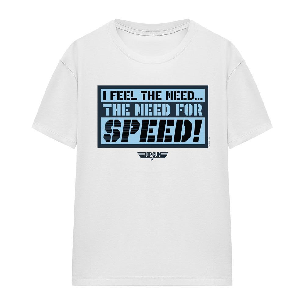 Dieses T-Shirt verfügt über einen klassischen Rundhalsausschnitt und kurze Ärmel, die eine bequeme und vielseitige Passform bieten. Die Vorderseite ist mit einem auffälligen Grafikdruck versehen, der "I FEEL THE NEED... THE NEED FOR SPEED!" zusammen mit dem ikonischen Top Gun Logo zeigt, was es zu einem herausragenden Stück für Fans macht.