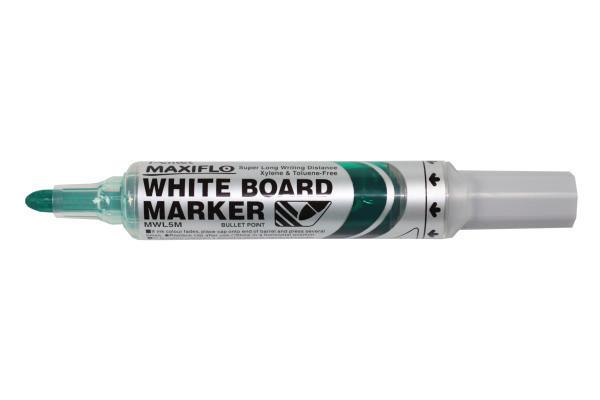 PENTEL - MAXIFLO Whiteboard Marker - runde Spitze Der Whiteboard Marker Maxiflo ist trocken abwischbar und trocknet dank seiner flüssigen Tinte und seinem Pumpsystem nicht aus. Er schreibt 3 mal länger als ein herkömmlicher Marker und überzeugt zudem mit hoher Farbintensität. Enthält gefährliche Stoffe, bitte Datenblatt beachten Trocken abwischbarer Marker Kein Austrocknen dank Pumpsystem Freifliessende Tinte Sehr hohe Ausgiebigkeit Konische Spitze RECYCOLOGY Produkt, besteht zu 50% aus Recyclingmaterial