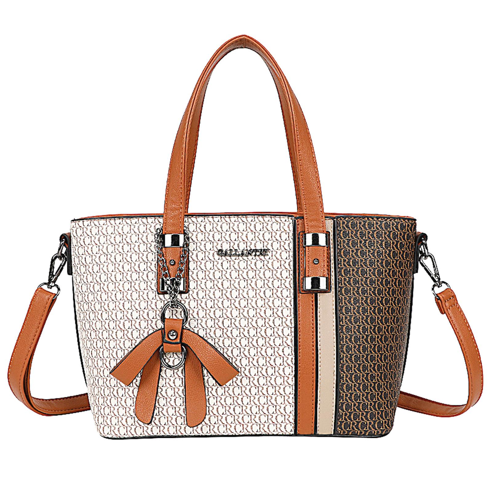 Diese Handtasche besticht durch ihre anspruchsvolle Eleganz und ihren unverwechselbaren Charme mit CR-Monogrammdruck, verziert mit einer dekorativen Hängeschleife und einem abnehmbaren Schulterriemen. Mit ihren praktischen Massen (27,5 cm Breite, 21 cm Höhe des Taschenkörpers und 12 cm Tiefe) bietet sie genügend Platz für wichtige Dinge (Telefon, Tablet, Geldbeutel, Kosmetika usw.).