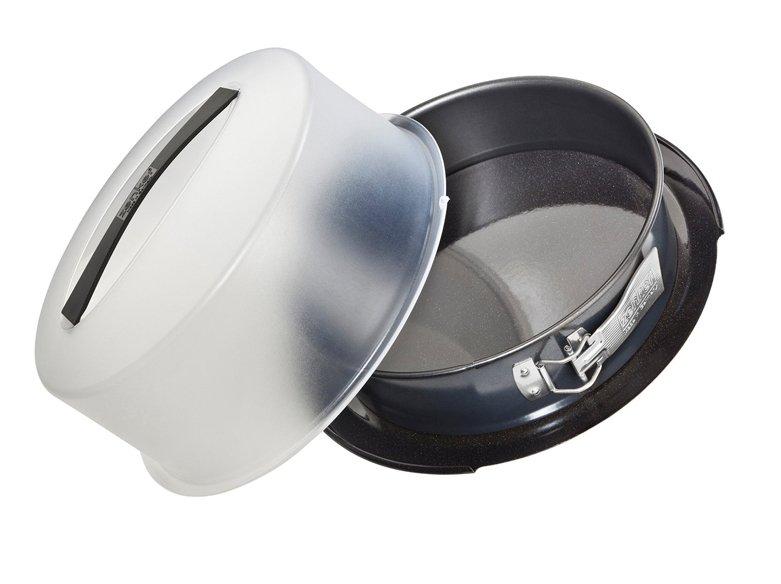 Springform mit emailliertem Flachboden Deluxe 28cm mit Auslaufschutz und Tragehaube