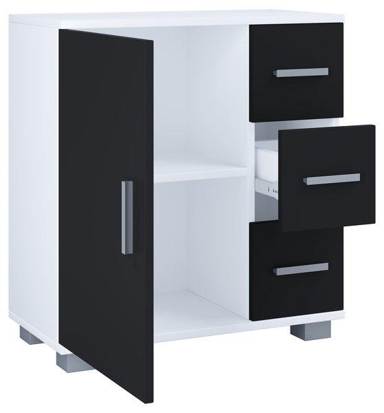 VCM, Holz Midischrank | Badschrank | Maße: H. 65 x B. 60 x T. 30 cm | 3 Schubladen | 1 große Drehtür | 2 Fächer.- Zalo XL