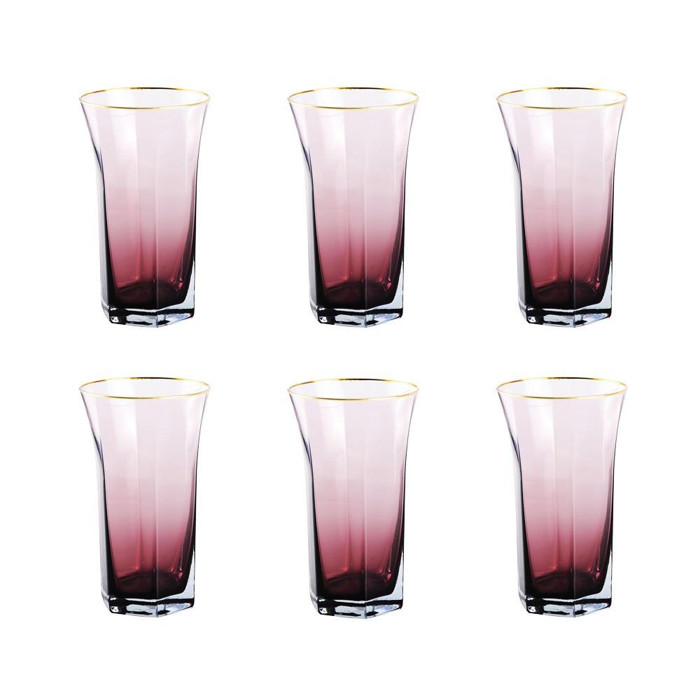 Aulica Hohe Gläser mit Lila Rand - Set von 6
