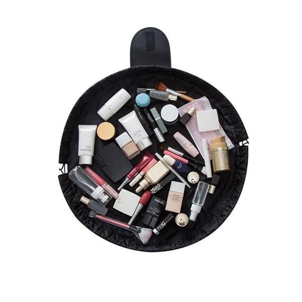 Eine clever gestaltete Kosmetik- oder Kosmetiktasche, die nur so viel Platz einnimmt, wie sie braucht! Indem Sie die Schnürsenkel von jeder Seite der Tasche ziehen, machen Sie sie so klein wie möglich, je nachdem, was Sie darin haben. Wenn Sie wieder auf den Inhalt zugreifen möchten, öffnen Sie die Tasche so weit wie nötig oder machen Sie sie ganz flach, damit Sie schnell finden, was Sie brauchen. Die Tasche schafft eine perfekte Grundlage für Ihr Make-up, sodass Sie nicht riskieren, Ihren Tisch schmutzig zu machen.