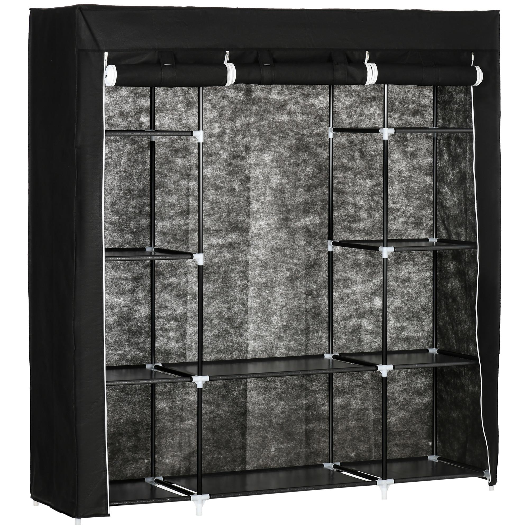 Mit diesem tragbaren Kleiderschrank aus Stoff von HOMCOM können Sie die Einfachheit in Ihrem Schlafzimmer in den Vordergrund stellen. Dank seiner praktischen und platzsparenden Eigenschaften können Sie den Schrank in Ihrem Schlafzimmer, Wohnzimmer oder an einem anderen Ort aufstellen, ohne Angst haben zu müssen, dass er die Einrichtung des Hauses stört. Zehn offene Einlegeböden und 1 Kleiderstange bieten viel Platz für Ihre Kleidung. Der Bezug aus Vliesstoff hält Ihre Sachen staubfrei.