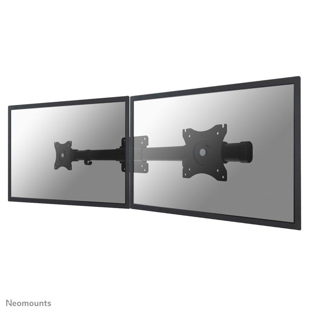 Die Neomounts by Newstar Modell FPMA-CB100BLACK ist eine Doppeltraverse mit der Sie 2 Monitore nebeneinander an eine Halterung anbringen können. Diese Doppeltraverse ermöglich eine unabhängige Bildschirmeinstellung, da Sie die Monitore frei über die horizontale Schiene anbringen können. Werkzeug wird hierfür nicht benötigt. Gebogene horizontale Doppeltraverse für eine verbesserte Betrachtungsposition - Kompatibel mit VESA 75x75 und 100x100 Montageschnittstelle - Kabelclips schützen die Kabel und sorgen für einen aufgeräumten Arbeitsplatz. Das benötigte Befestigungsmaterial ist im Lieferumfang enthalten.