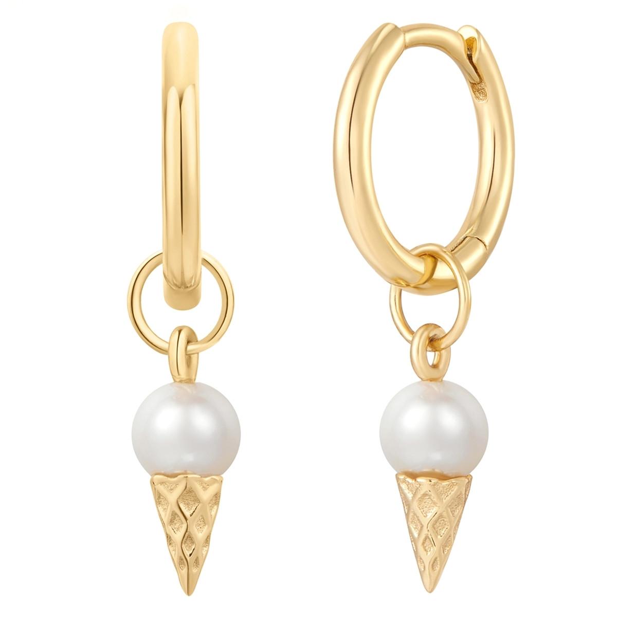 Du magst verspielten Motivschmuck? Dann kannst du diesen Creolen des Labels Glanzstücke München nicht widerstehen. Highlight ist das Einhänger-Design: Die Mini-Eistüte ist nicht fest mit der Creole verbunden, sondern wird auf den Ohrring geschoben. So kannst du die Creole sowohl "pur" tragen als auch mit wenigen Handgriffen in ein Accessoire mit sommerlichen Vibes verwandeln. Creole und Eistüte sind aus 925er Sterlingsilber gefertigt und mit warm schimmerndem Gelbgold und einer Süßwasser-Zuchtperle veredelt. Praktische Klappverschlüsse sorgen für hohen Tragekomfort und unkompliziertes An- und Ablegen.