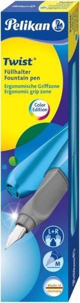 TWIST ? Füllhalter Jetzt kommt Schwung in die Sache! Der TWIST Füller ist extra so geformt, dass er gut in deiner Hand liegt. Durch seine ergonomische Griffzone kannst du ganz entspannt schreiben und bringst deine Texte federleicht auf das Papier. Er ist perfekt für den Dauereinsatz in der Schule und zu Hause. Und wenn du dich mal verschreibst? Kein Problem, denn die blaue Tinte des Füllers lässt sich mit dem Re.Twist ganz einfach löschen! Trendiger Füllhalter in gedrehtem Look Mit sanft gleitender Edelstahlfeder Für Links- und Rechtshänder geeignet Patronenfüllsystem Made in Germany
