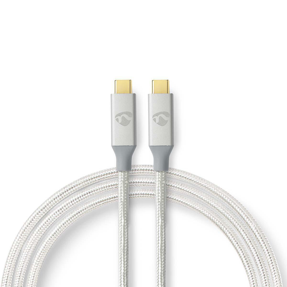 Nedis USB-Kabel | USB 3.2 Gen 2x2 | USB-C™ Male | USB-C™ Male | 100 W | 4K@60Hz | 20 Gbps | Vergoldet | 2,00 m | Rund | Geflochten / Nylon | Silber | Box mit abgedecktem Fenster
