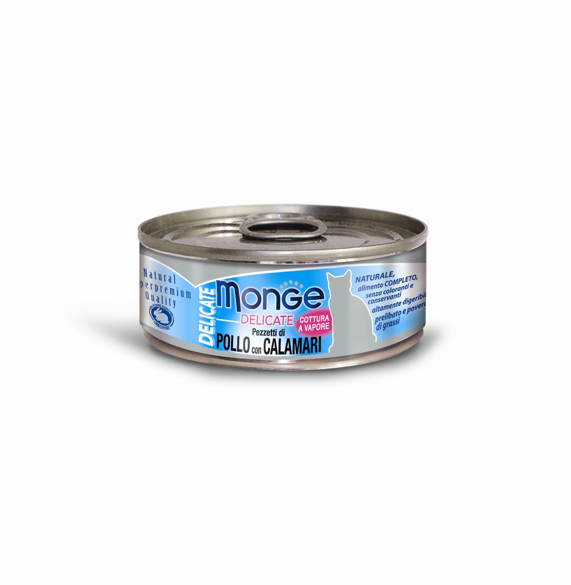 Monge Natural Katze Huhn und Tintenfisch 10x80g Monge Delicate Chicken & Squid ist ein vollwertiges und bekömmliches Katzenfutter, bestehend aus schmackhaftem Huhn und Schinken, das Ihre Katze mit einer gesunden und natürlichen Form von Energie versorgt.
