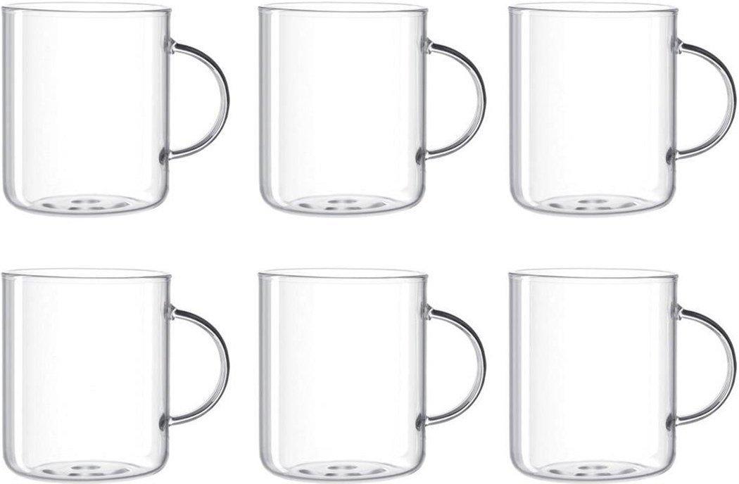 Material: Glas, Tassen Typ: Teetasse, Ausstattung: Henkel, Detailfarbe: Transparent, Verpackungseinheit: 6 Stück, Volumen: 400 ml
