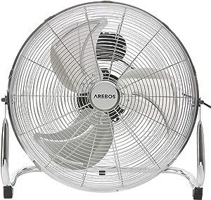 [LEISTUNGSSTARK] Mit 120 Watt Leistung und 18 Zoll (45 cm) Durchmesser trotzt der Arebos Bodenventilator auch extremer Hitze [ANPASSBARER NEIGUNGSWINKEL] Mit dem verstellbaren Neigungswinkel von 110° kann er sich jeder Situation anpassen und für wohltuende Erfrischung sorgen [3 GESCHWINDIGKEITSSTUFEN] 3 regulierbare Geschwindigkeitsstufen sorgen für einen hohen Komfort und eine maximale Luftverteilung in Ihren Räumen [FLEXIBEL EINSETZBAR] Die Windmaschine eignet sich neben dem Einsatz zu Hause auch für große Büros oder Hallen sowie Filmsets und Fotoshootings [HOCHWERTIGE VERARBEITUNG] Der Arebos Bodenventilator verfügt über eine hochwertige Kupferspule und besteht aus robusten Materialien, die für ein hohes Maß an Sicherheit sowie Langlebigkeit sorgen. Flexibel einsetzbar Egal ob im Schlafzimmer oder im Wohnraum, die kompakte Windmaschine von AREBOS ist immer eine gute Wahl. Der ruhige Lauf wird als äußerst angenehm und nicht störend empfunden. Die Kabelaufwicklung ermöglicht ein unkompliziertes Verstauen. Ab sofort trotzt der kraftvolle AREBOS Bodenventilator der Sommerhitze. Mit einem Lüfterblattdurchmesser von 45 cm erzeugt dieser einen besonders starken Wind. Egal ob im Schlafzimmer oder im Wohnraum, die kompakte Windmaschine von Arebos ist immer eine gute Wahl. Der ruhige Lauf wird als äußerst angenehm und nicht störend empfunden. Die Kabelaufwicklung ermöglicht ein unkompliziertes Verstauen. Der praktische Tragegriff ermöglicht einen schnellen Ortswechsel, weshalb der AREBOS Bodenventilator mobil einsetzbar ist und somit auch in der Gastronomie gern gesehen. Technische Daten Größe: 18 Zoll Leistung: 120 W Anschlussspannung: 220-240 V; 50 Hz Neigungswinkel: 110° Gebläsestufen: 3 Luftgeschwindigkeit: 3,95 m/s Schalldruckpegel: 65 db (A) Länge Netzkabel: 1,5 m Größe Ventilatorflügel: 45 cm Abmessungen: 19 x 54,5 x 56 cm Gewicht: 4,5 kg Marke: AREBOS Lieferumfang: 1x Bodenventilator 1x Bedienungsanleitung