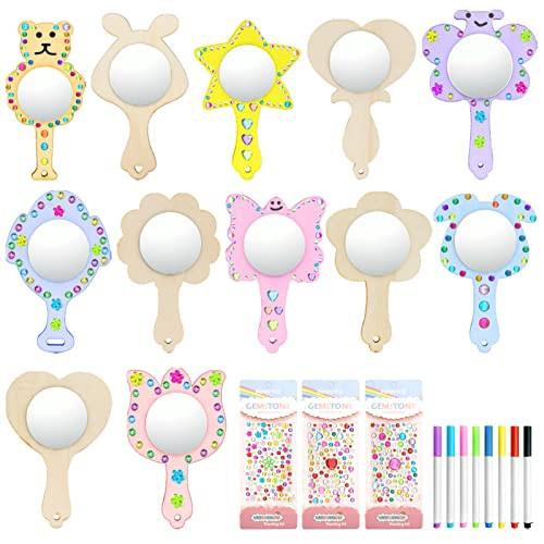 Holzspiegel-Bastelset: Das Set enthält 12 hölzerne Handspiegel, 3 Blätter selbstklebende Glitzersteine, 8 bunte Marker (8 Farben). Hohe Qualität: Hergestellt aus hochwertigem Holz und Spiegel, glatte Oberfläche und Schnitt ohne Grate, langlebig, nicht leicht zu brechen, kann für eine lange Zeit gespeichert werden. DIY: Diese unvollendeten Handspiegel sind einfach zu bemalen und zu färben. Es fördert auch die freie Kreativität und die praktischen Fähigkeiten der Kinder und stärkt die Beziehung zwischen Ihnen und Ihrem Kind. Vielseitig einsetzbar: Großartig zum Färben und Dekorieren. Ideal für Kinderzimmer, Geburtstagsfeiern, Weihnachten, Urlaubsdekorationen, Baby-Duschen. Perfektes Geschenk: Perfektes interaktives Eltern-Kind-Spiel, Bietet perfekte und exquisite Geschenke für jedes Kind. Holzhandwerk kann für eine lange Zeit gehegt werden, und auch die Beziehung sind es wert, für immer zu hegen. Größe-23.8 x 19.0 x 4.1 cm