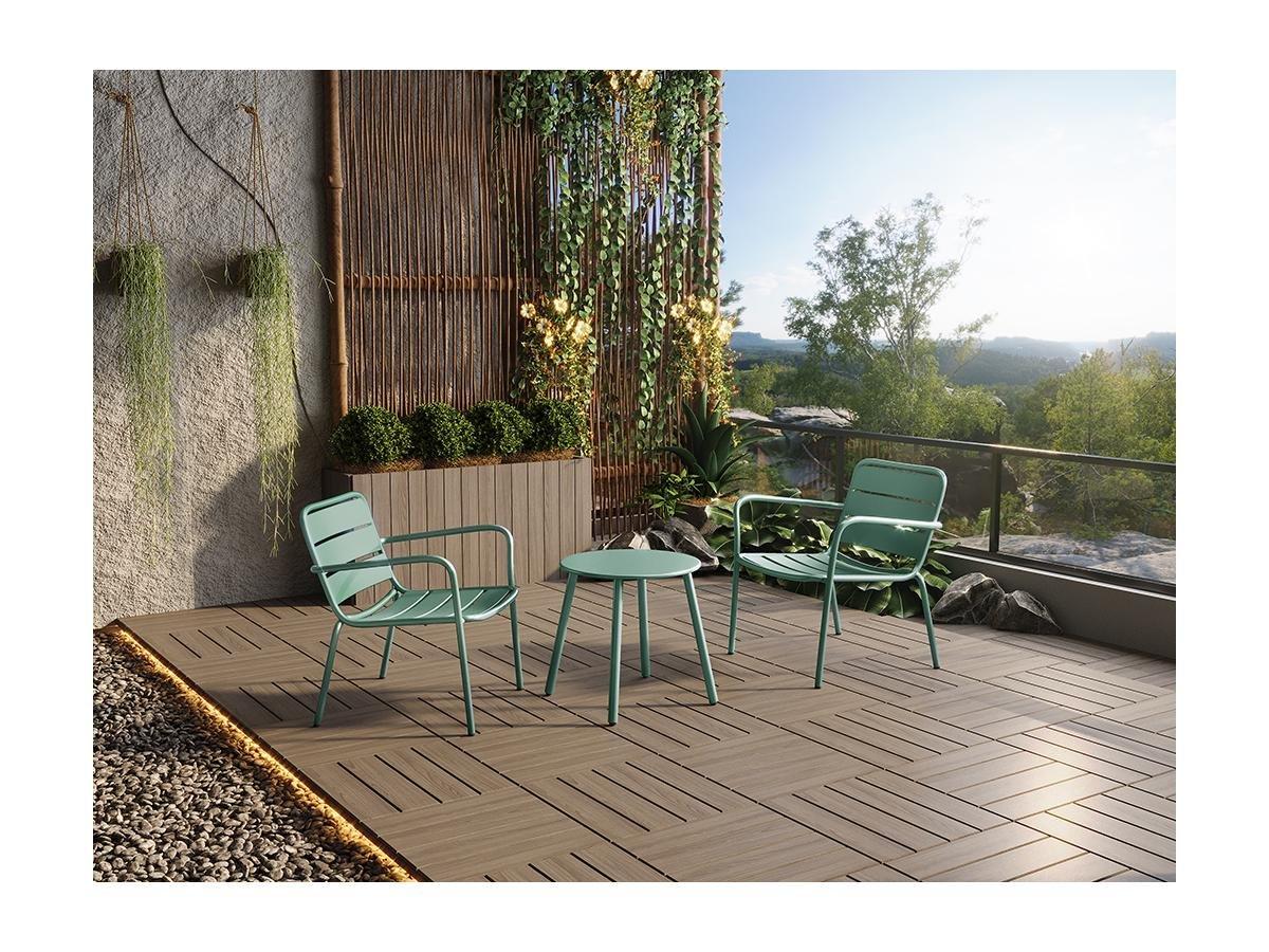 Vente-unique, Garten-Sitzgruppe: Beistelltisch + 2 stapelbare Sessel - Metall - Hellgrün - MIRMANDE von MYLIA