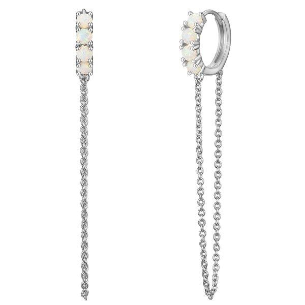 Ohrhänger oder doch lieber Creole? Dieser Ohrschmuck des Labels Glanzstücke München vereint beides im angesagten Vintage-Stil. Eine filigrane Creole schmiegt sich an dein Ohrläppchen, während das zarte Doppelkettchen sanft schwingend zum Blickfang wird. Highlight sind die milchig-schillernden Opale, die exklusive Akzente auf der Creole setzen. Ob Casual oder festliches Outfit: Die trendigen Ohrstecker überzeugen durch Stil und einen hochwertigen Materialmix. Gefertigt aus 925er Sterlingsilber, sind sie mit einer hochwertigen Rhodiumveredelung vor dem Anlaufen geschützt, die gleichzeitig den strahlenden Silberglanz betont. Ein praktischer Klappverschluss ermöglicht schnelles An- und Ablegen für besten Tragekomfort.