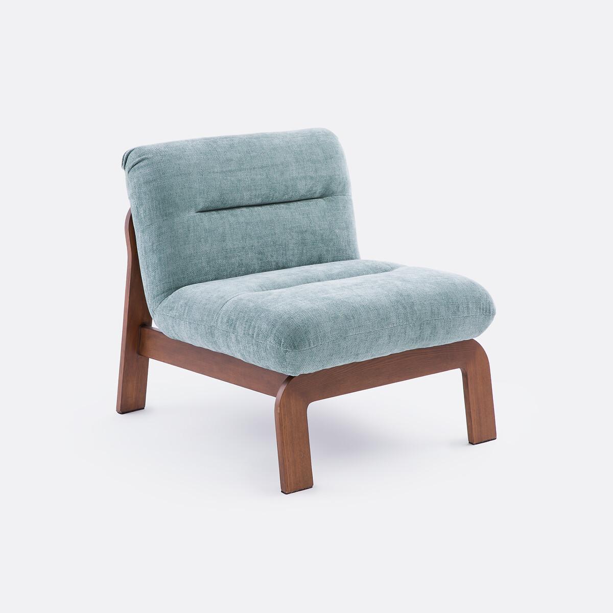 Der Sessel Talet besticht durch sein kleines Format, das zugleich bequem und umhüllend ist. Seine Silhouette erinnert an ein grosszügiges Kissen, das sanft auf einem Gestell aus nussbaumfarbenem Massivholz liegt. Die abgerundeten Linien des Gestells verstärken seine warme und beruhigende Ausstrahlung. Er setzt die ikonische Ästhetik des Talet-Stuhls harmonisch fort.