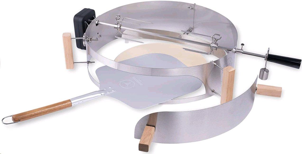 Mit Moesta BBQ Smokin PizzaRing XL Paketmachst du aus deinem Kugelgrill einen perfekten Pizzaofen und Drehspiess.