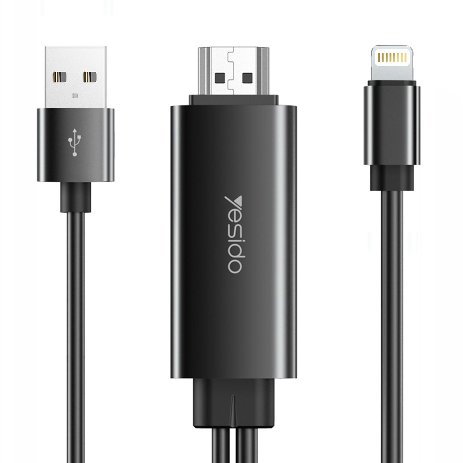 Lightning / HDMI Videokabel von Yesido. Ermöglicht die Übertragung von Inhalten auf einen großen Bildschirm mit einer HD-Auflösung von 1080p. USB-Schnittstelle für gleichzeitiges Laden. Länge 1.8m. Kompatibel mit iOS: iPhone und iPad. Plug and Play.