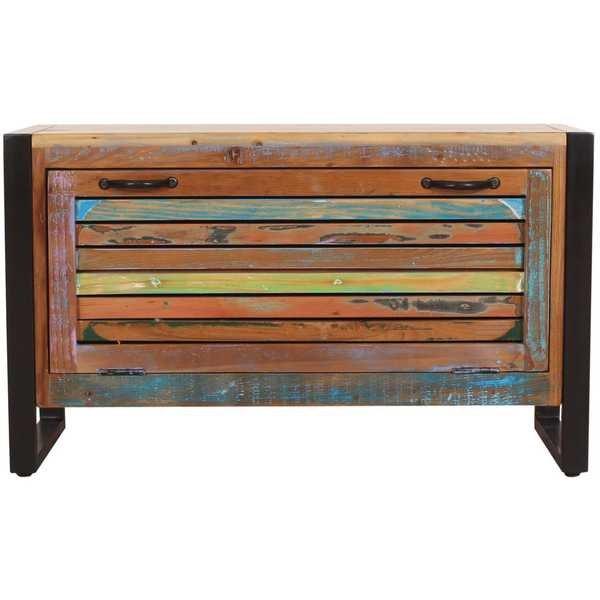 Schuhschrank mit 1 Klappe (innen 1 Boden) für ca. 6 Paar Schuhe, Farbe: bunt, Material: Altholz, Metall, 85x35x50 cm