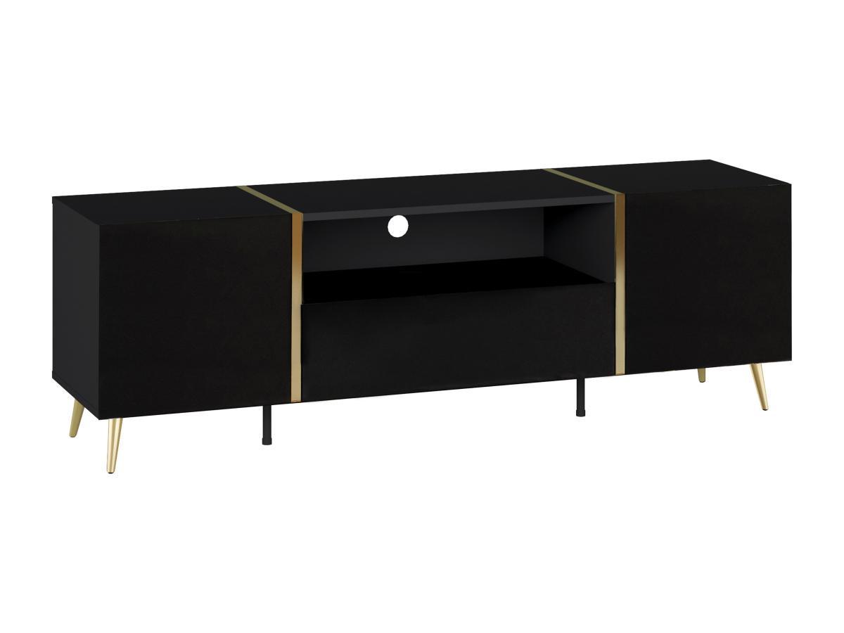 Vente-unique, TV-Möbel mit 2 Türen, 1 Schublade & 1 Ablage - Schwarz glänzend & Goldfarben - MARZIALO