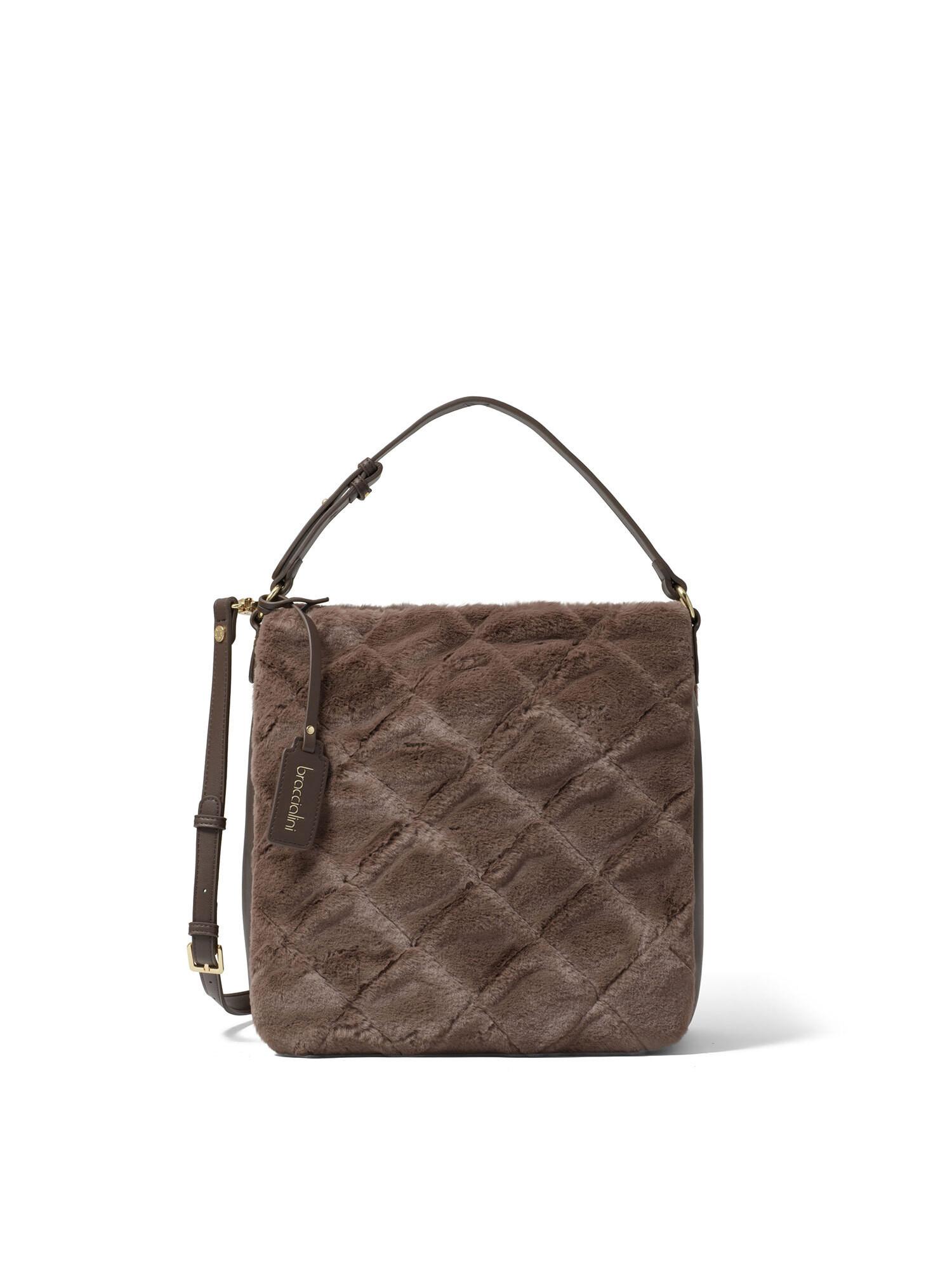 Diese Umhängetasche präsentiert sich in einem gesteppten Design, das ein stilvolles und strukturiertes Accessoire bietet. Sie ist sowohl mit einem kurzen Griff als auch mit einem langen, verstellbaren Riemen ausgestattet, was vielseitige Tragemöglichkeiten ermöglicht. Das Hauptfach wird mit einem Reissverschluss geschlossen, und es gibt eine interne Reissverschlusstasche sowie eine offene Innentasche. Das Aussenmaterial ist eine Mischung aus Polyurethan und Polyester, während das Innere mit 100 % Polyester gefüttert ist.