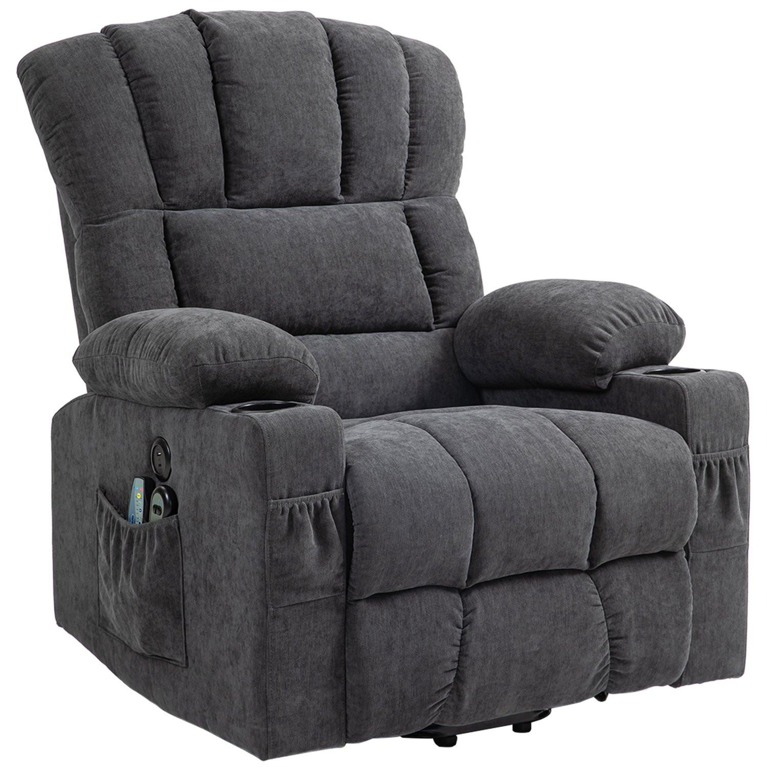 Northio  Fernsehsessel mit Aufstehhilfe Elektrisch Relaxsessel mit Liege-, Heiz- und Massagefunktion, TV-Sessel mit Typ-C- und USB-Anschlüssen, Becherhalter, Dunkelgrau