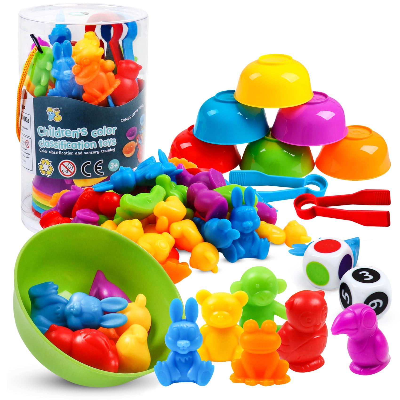 Zählen Sortieren spielen Stücke 47 Tier Spielzeug Teile zählen: 36 niedliche Tiere in 6 leuchtenden Farben, 2 Jumbo-Pinzetten, 6 bunte Sortierbecher, 2 Würfel, Aufbewahrungsgefäß, die ein lustiges Erlebnis für Kleinkinder schaffen. Sie sind das perfekte Spielzeug zum Lernen von Farben und Sortieren ist auch ein Gedächtnisspiel. 47-teiliges Tierspielzeug für Kinder ist schön und langlebig in einer Vielzahl von Farben. Natürlich ist dieses Stielspielzeug von der Prüfstelle getestet, und es ist ungiftig, geruchlos, frei von bpa, Blei und Phthalaten. Damit können Kinder sicher spielen. Kinder werden es lieben, die Tiere nach Farbe und Form in ihre bunten Honiggläser zu sortieren und sie zu zählen. Die leuchtenden Farben sind anregend und machen Spaß beim Zählen und Sortieren! Das niedliche Tier-Mathe-Spiel hilft Kindern, frühe mathematische Fähigkeiten wie Zählen, Gruppieren, Muster bilden und Zuordnen zu erlernen. Jungen und Mädchen können dieses Mathe-Lernspielzeug auch als Hilfsmittel zum Erlernen einfacher mathematischer Operationen wie Zählen, Addieren und Subtrahieren verwenden. Das Zähltierspiel mit den Bechern hilft bei den ersten Schritten der visuellen Wahrnehmung. Sie stimulieren und regen den Geist Ihres Kindes an, verbessern seine feinmotorischen Fähigkeiten und lenken seine Aufmerksamkeit auf die Bewegung und Platzierung von Objekten, während es sich des Gleichgewichts, der Koordination und der Schwerkraft bewusst wird. Größe-9.0 x 9.0 x 16.0 cm