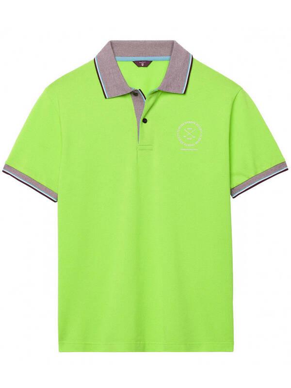 Das Society Kurzarm-Poloshirt ist aus Stretch-Baumwoll-Piqué gefertigt und bietet sowohl Komfort als auch Stil. Es verfügt über einen edlen Flachstrickkragen und eine Knopfleiste mit zwei Knöpfen. Das Design wird durch Kontrastfarben und Streifendetails an Kragen und Ärmeln sowie seitliche Saumschlitze für zusätzliche Bewegungsfreiheit ergänzt. Grafikprints auf der Brust und am oberen Rücken runden den Look ab.