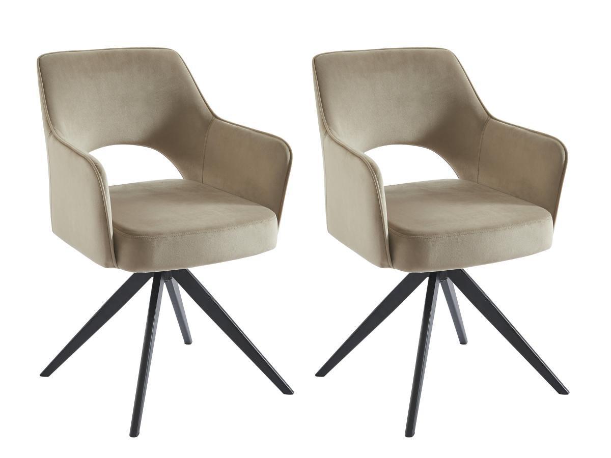 Vente-unique, Drehstuhl 2er-Set mit Armlehnen - Samt &es Metall - Beige - KONYA