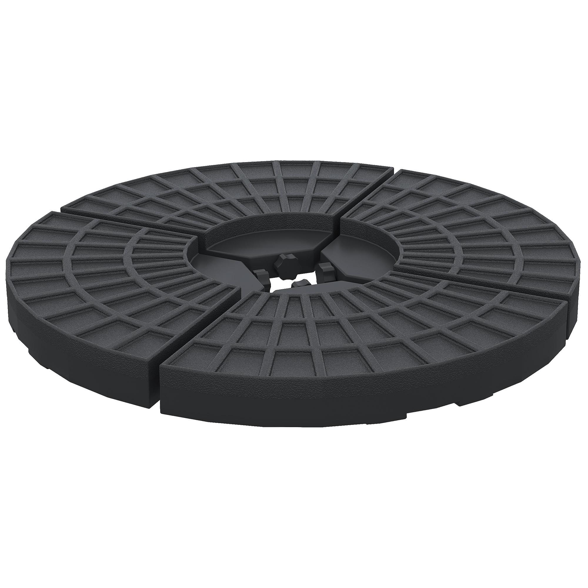 Mit diesen Schirmgewichten wird Ihr Sonnenschirm auch bei Wind unnachgiebig und fest stehen. Diese Gewichte eignen sich für Schirme mit einem Kreuzständer. Das Set besteht aus vier Teilen und sind aus hochwertigem Kunststoff gefertigt. Für erstklassige Standfestigkeit sind sie mit Sand oder Wasser befüllbar. An jedem Element befindet sich ein Metallgriff, sodass sie leichter bewegt werden können. Unbefüllt sind die Gewichte leicht und können platzsparend verstaut werden.