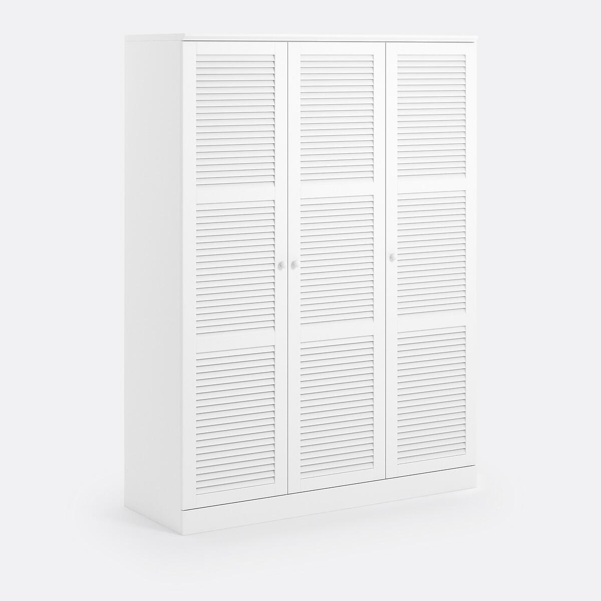 3-türiger Kleiderschrank Mayor. Dieser zeitlos-klassische Schrank hat 3 Türen, 5 Böden und ein Hängeabteil und bietet damit viel Stauraum bei wenig Platzbedarf!