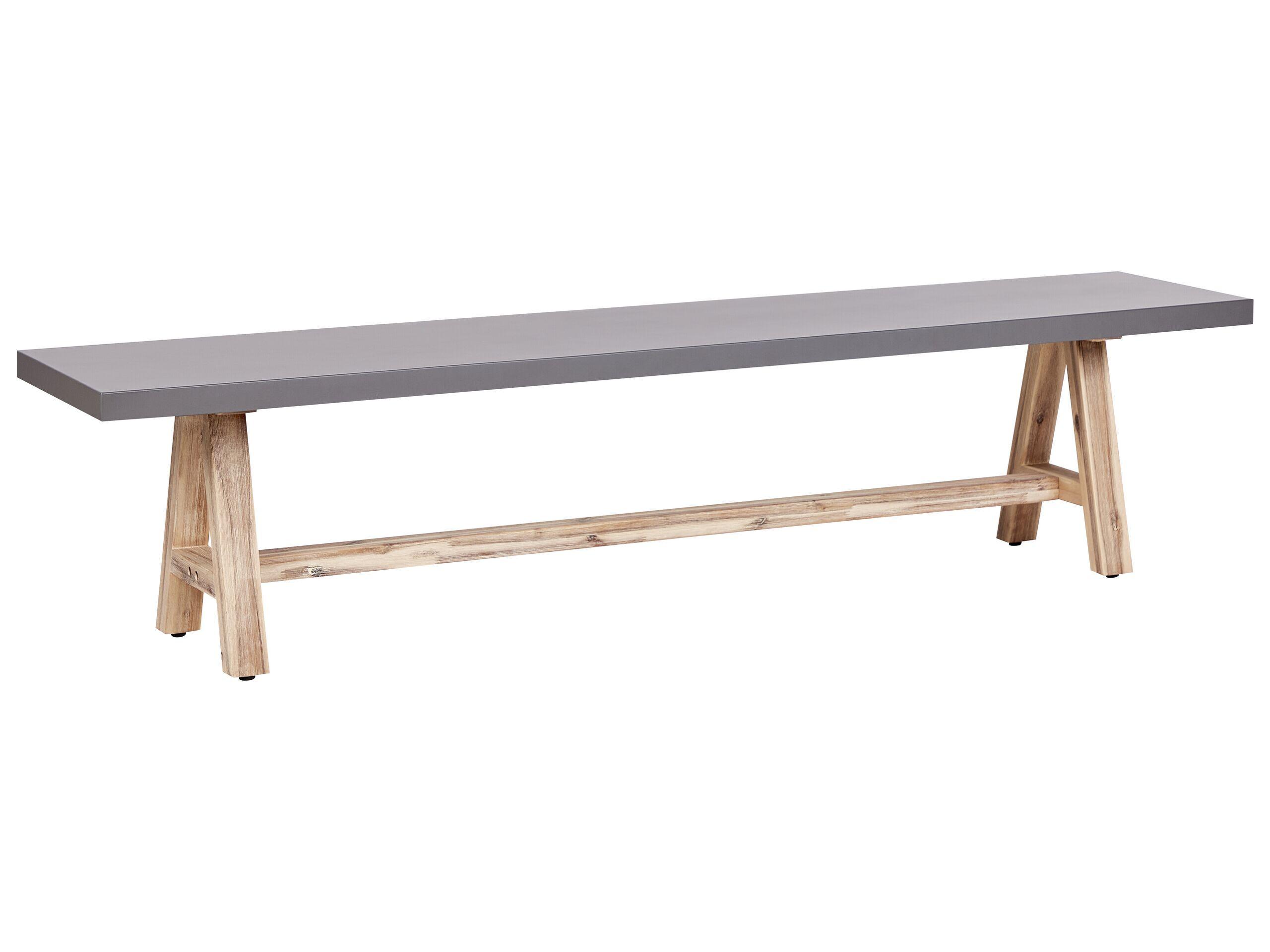 Aussenbank aus Beton mit Holzfüssen. Das Design dieser Gartenbank besteht aus einer glatten Sitzfläche aus massivem Beton und stabilen Beinen aus Akazienholz. Die Kombination aus grauem Beton und hellen Holztönen sorgt für einen modernen Look, der sich für verschiedene Aussenbereiche eignet. Die Bank ist auf Langlebigkeit und Komfort ausgelegt und bietet eine stilvolle und funktionelle Sitzgelegenheit, an der Sie viele Jahre Freude haben werden.