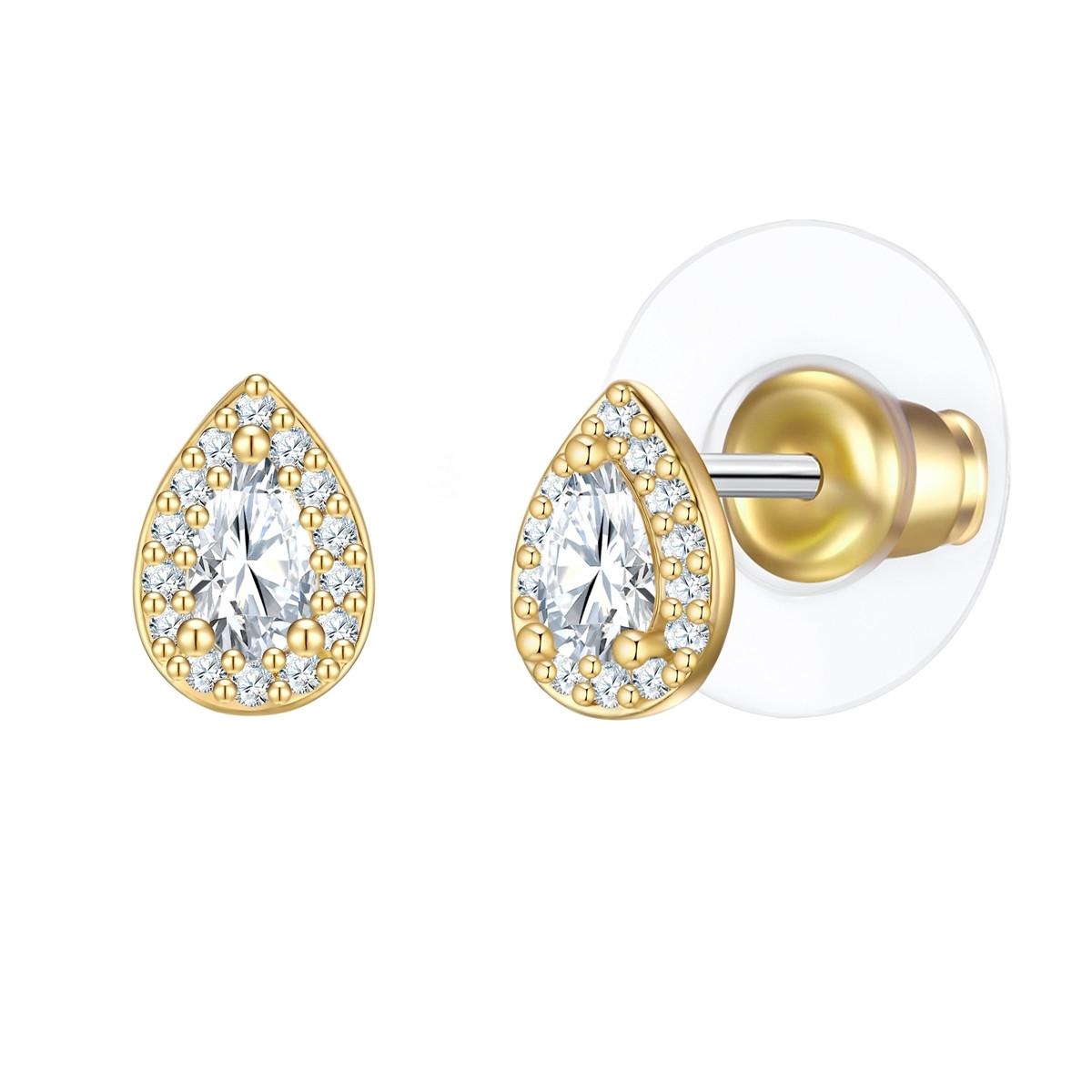 Du suchst glamourösen, aber erschwinglichen Ohrschmuck? Dann wirst du diese zauberhaften Ohrstecker des Trend-Labels YOKOAMii mögen! Eyecatcher ist das tropfenförmige Entourage-Design - ein präzises Arrangement glitzernder Zirkoniakristalle um einen zentralen Zirkonia-Solitär. Mit Fassungen und Steckern aus Messing mit 14-karätigem Gelbgold-Finish wird ein klassisches Schmuckdesign als zeitgemäßer Modeschmuck interpretiert. Ob im Büro, in der Freizeit oder für ein festliches Abend-Outfit: Diese Ohrstecker passen immer und haben das Zeug zum Lieblingsstück. Für einfaches An- und Ablegen sorgt der praktische Steckverschluss.