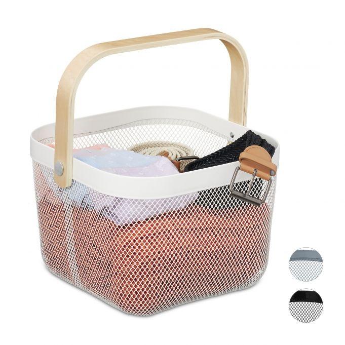 Der vielseitige Metallkorb sorgt für stilvolle Ordnung im Haushalt und bietet dekorative Aufbewahrung für Lebensmittel, Kleidung, Schreibtischutensilien und mehr. Sein robustes Metalldesign mit Holzgriffen passt zu jeder Einrichtung.