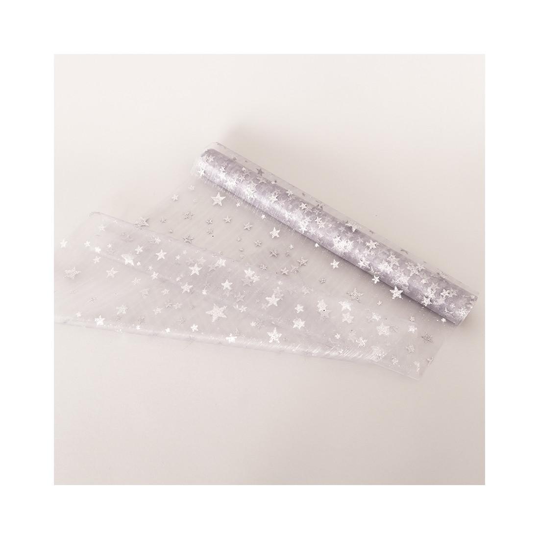 Dameco, Dekostoff "Organza" silber + silbrige Sterne