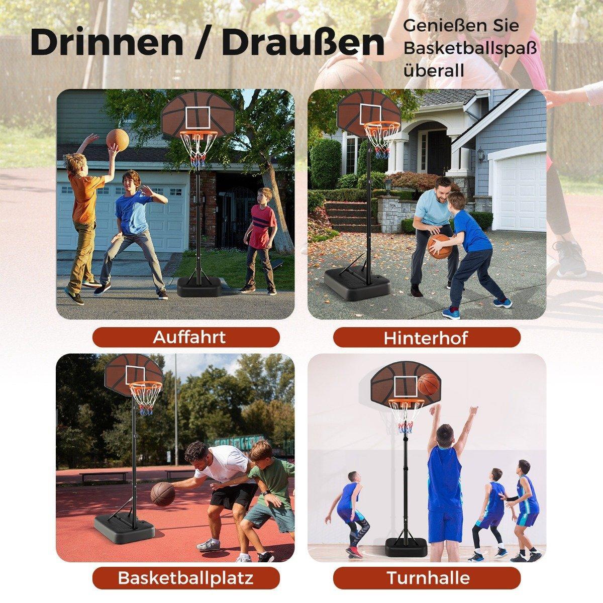 Die große und stabile Basis kann wahlweise mit 20 Litern Wasser oder 26 kg Sand befüllt werden und sorgt so für die nötige Stabilität bei intensivem Spiel. Die Basis ist außerdem mit einem Griff ausgestattet, sodass Sie den Basketballkorb einfach an den gewünschten Ort bewegen können, sei es die Einfahrt, der Hinterhof oder die Turnhalle. Dank der Portabilitätsfunktion können Sie Basketballspaß genießen, wo immer Sie möchten.