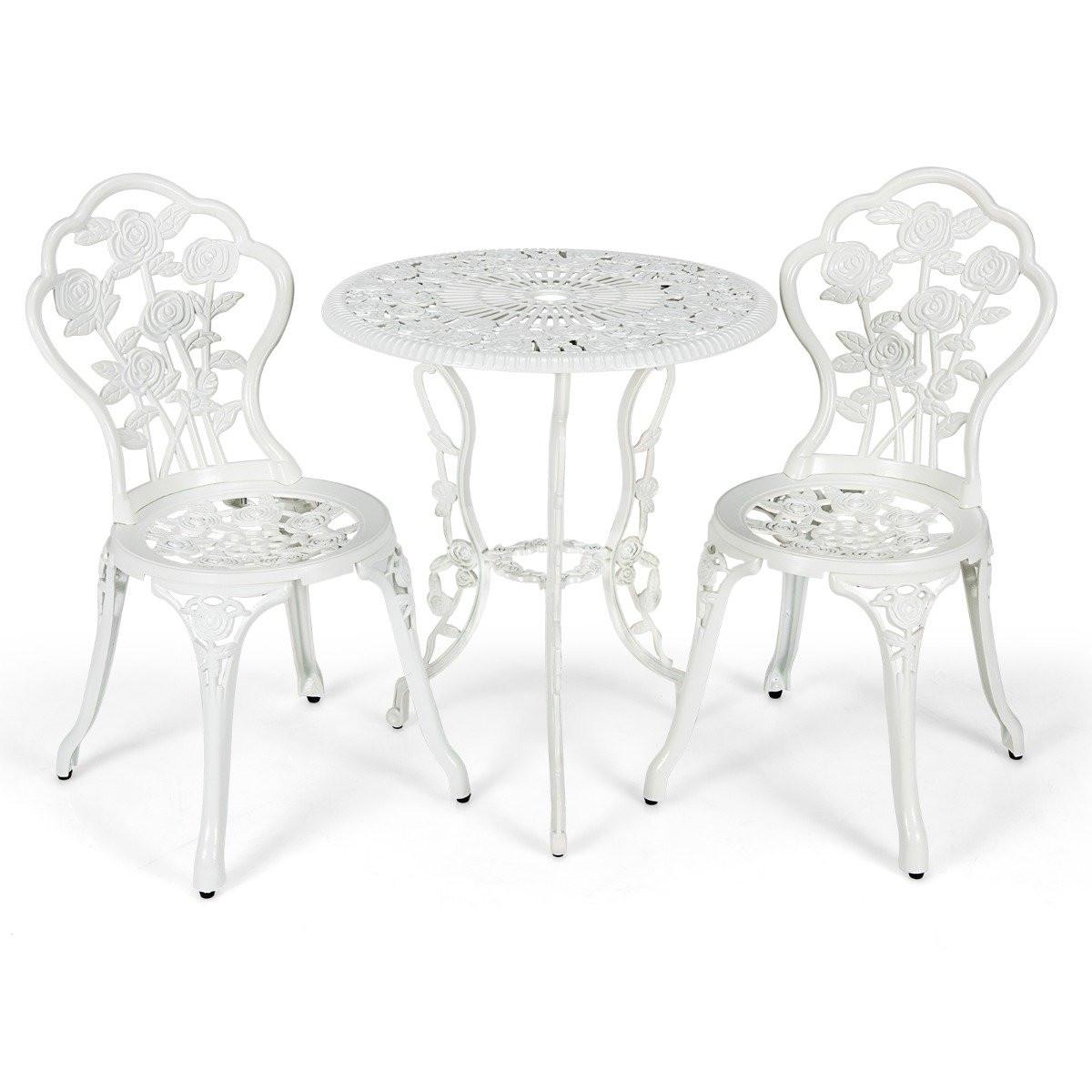 Northix 3-tlg. Gartenmöbel Set Balkonset mit 2 Stühle & Tisch aus Aluminiumguss & Gusseisen Weiß