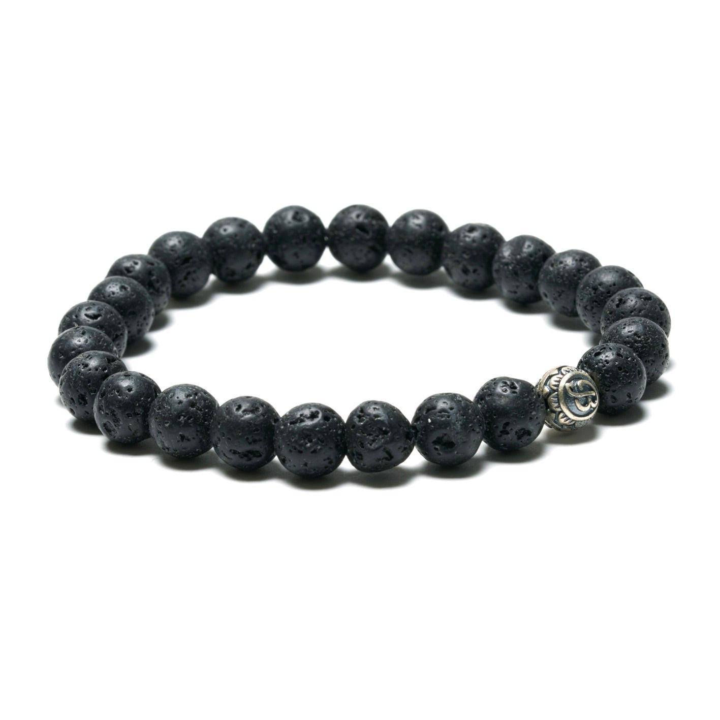 Herren Armband mit 8 mm Vulkansteinen & gravierter 925 Silber Kugel Stark & Elegant