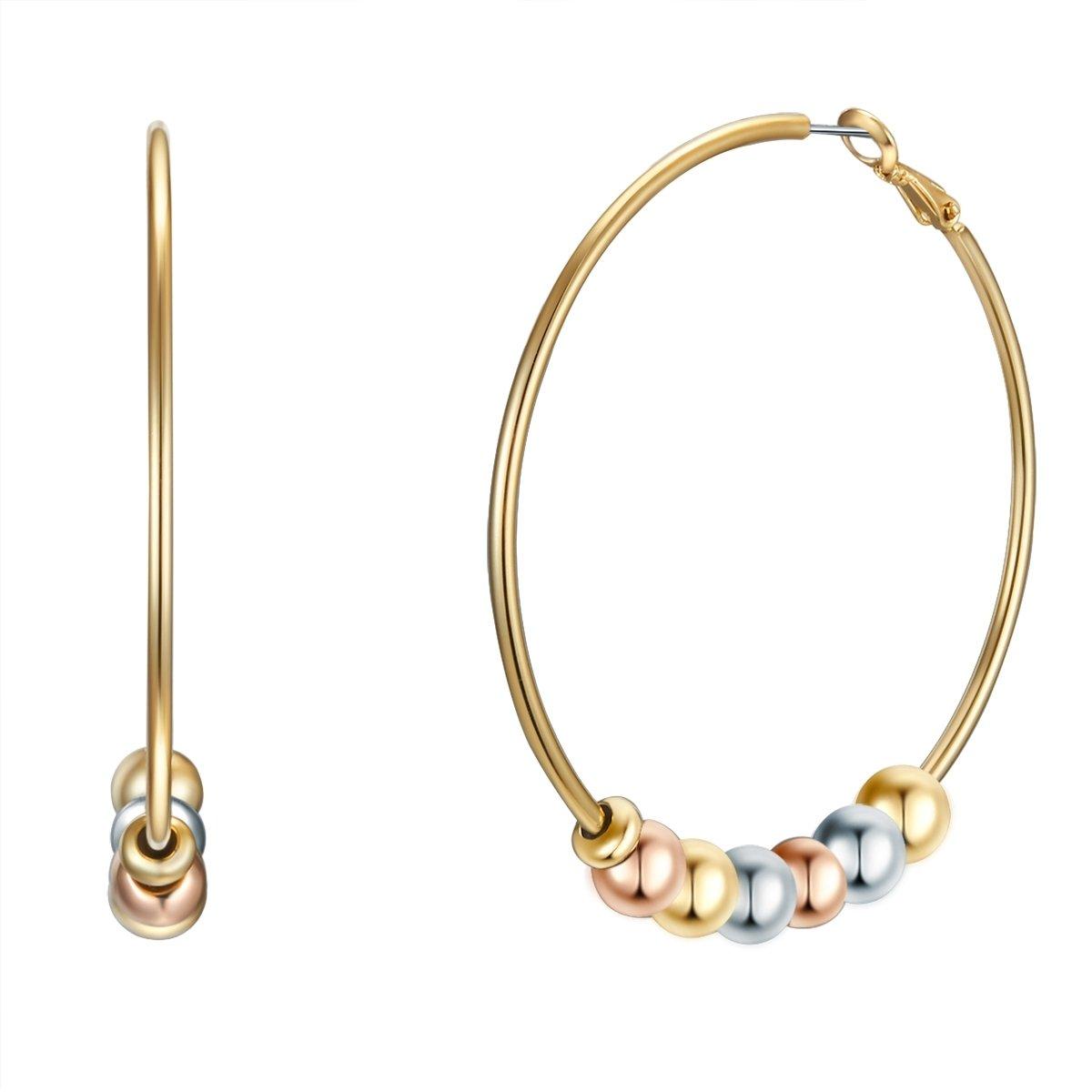 Creolen sind die Klassiker des Ohrschmucks und werden in dieser Kreation des Trend-Labels YOKOAMii zeitgemäß umgesetzt. Eine große, filigrane Creole aus gelbvergoldetem Metall trägt kleine Metallperlen, die abwechselnd mit Gelbgold, Roségold und silberfarbenem Rhodium veredelt sind - ein zauberhaftes Design im Tricolor-Look und ein Accessoire mit Eyecatcher-Garantie. Dein großer Vorteil: Die Creolen passen zu deinen Lieblingsschmuckstücken aller Edelmetall-Nuancen und sind damit ein echtes Every-Day-Piece. Ein praktischer Bügelverschluss sorgt für besten Tragekomfort und einfaches An- und Ablegen.