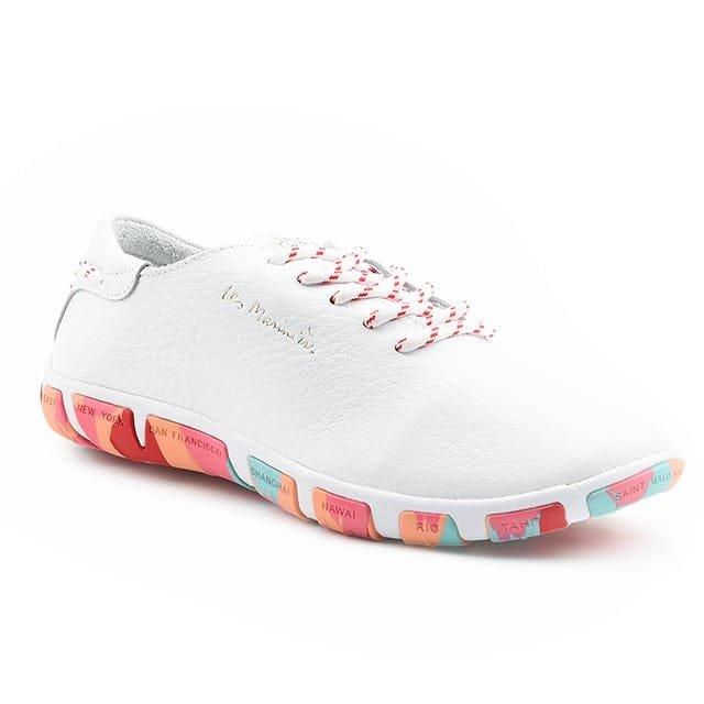 Die Jazaru sind stylische Trotter für den täglichen Gebrauch. Ihr Leder-Obermaterial bietet außergewöhnliche Flexibilität und Haltbarkeit. Die Ledereinlegesohlen garantieren den ganzen Tag über optimalen Komfort. Gummiaußensohlen bieten gute Dämpfung und soliden Schutz. Stildetails wie die rot-weiß gestreiften Schnürsenkel verleihen diesen Trottern eine persönliche Note. Die weiße Farbe ist eine klassische und universell passende Wahl. Der Jazaru eignet sich ideal für Ausflüge, Arbeits- oder Alltagsaktivitäten.