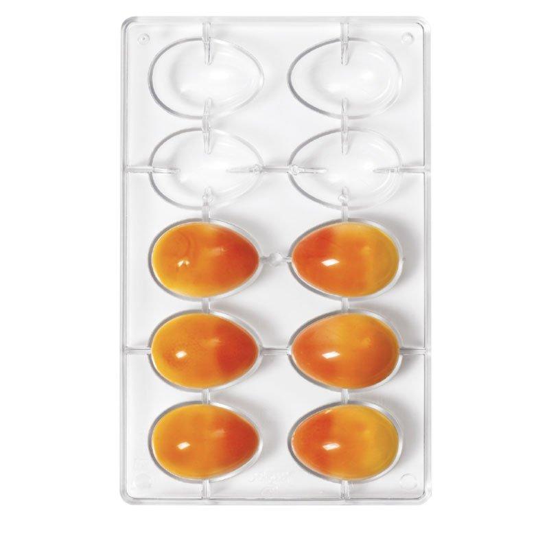 Ein edles Osterei selbst zu machen, ist mit der hochwertigen Schokoladenform Gänseei kein Problem. Mit verschiedenen Farben und Schminkideen entsteht Deine ganz individuelle Schokoladenfigur. Material : Lebensmittelechtes Polykarbonat Produktionsland : Italien Ungefähres Gewicht der fertigen Schokoladenform : 30 g Grösse : Länge: 27.5 cm / Breite: 17.5 cm / Höhe: 2 cm Grösse des Endproduktes : Länge: 4.5 cm / Breite: 2 cm / Höhe: 6 cm Menge : 5 Stück Saison & Anlass : Frühling & Ostern Hinweis : Verpackung: Klarsichtbeutel mit Goldboden, Art: 002986