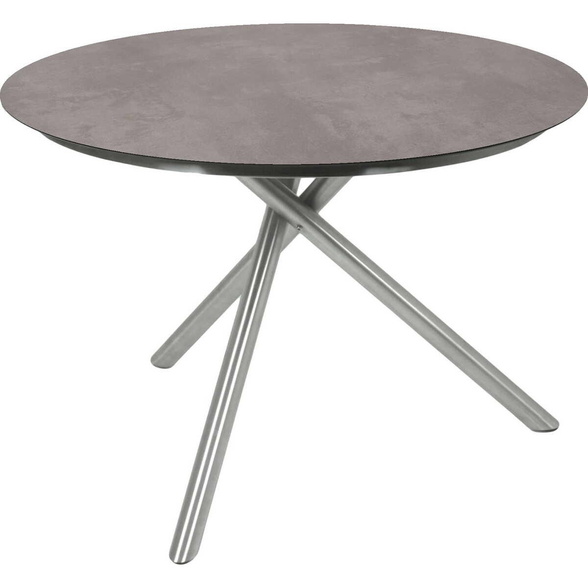 Form: rund - perfekt für gesellige Runden Hergestellt aus hochwertigem Edelstahl - garantiert Langlebigkeit Strapazierfähige HPL-Tischplatte in Grau - widersteht den Elementen Zeitgemässes Design - fügt sich in verschiedene Einrichtungsstile ein Vielseitig einsetzbar - ideal für Innen- und Aussenbereiche Maximale Belastbarkeit: 40 kg - robust und zuverlässig