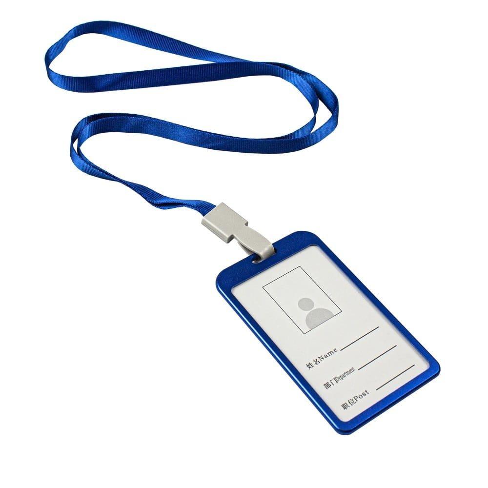 Kartenhalter mit Aluminiumrahmen. Der Halter eignet sich gut für Namensschilder und Mitarbeiterausweise, die Sie sichtbar und bei Bedarf einfach vorzeigen möchten. Da der Kartenhalter aus einem Rahmen besteht, ist er ideal für 1 oder 2 Karten, wodurch Sie beide Seiten einer Karte oder zwei verschiedene Karten betrachten können. Es wird mit einem farblich passenden Band geliefert, das Sie am Kartenhalter befestigen können, sodass Sie es beispielsweise einfach um den Hals tragen können.