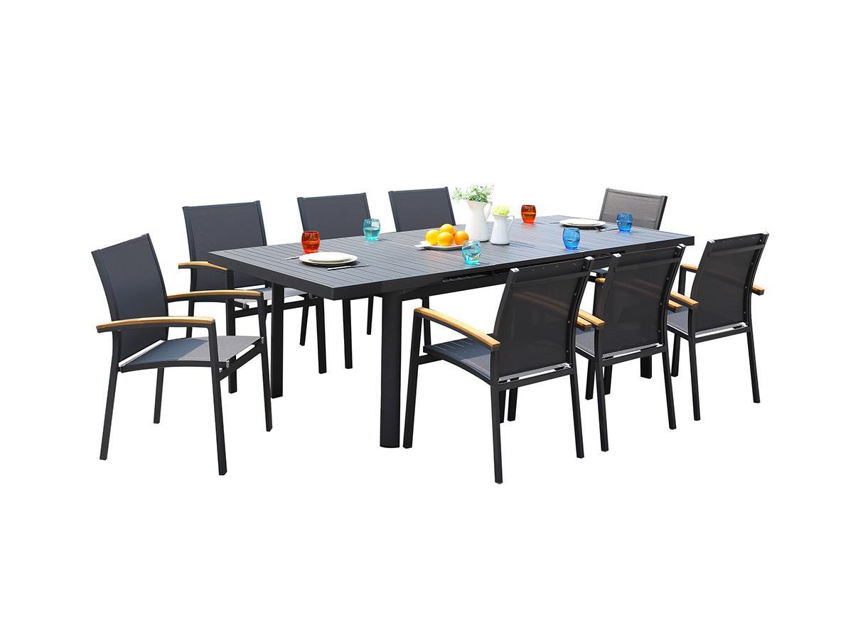 Vente-unique Garten Essgruppe Aluminium Tisch ausziehbar 12 + 8 stapelbare Sessel NAURU