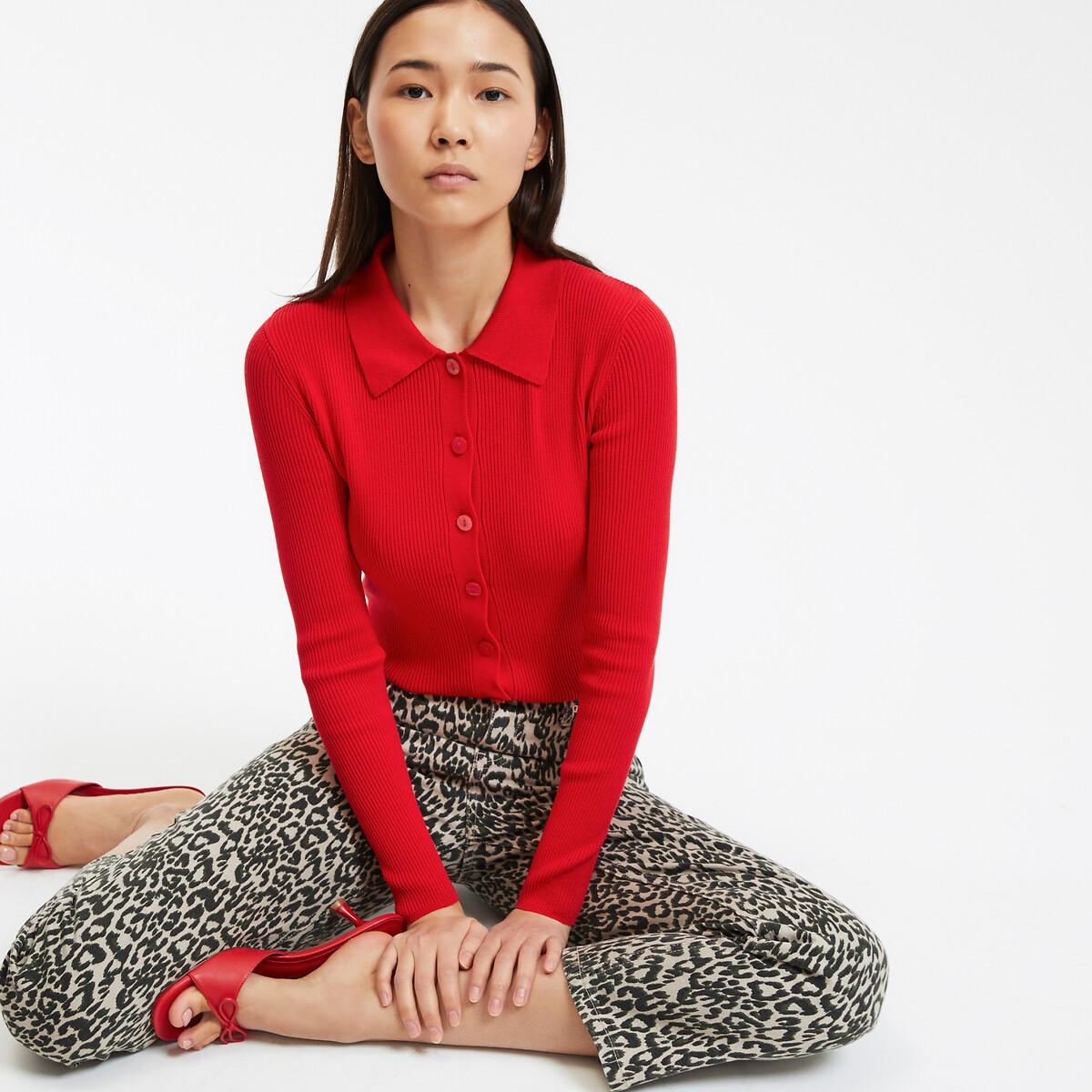La Redoute Collections Feinstrickcardigan mit Kragen und Knopfverschluss