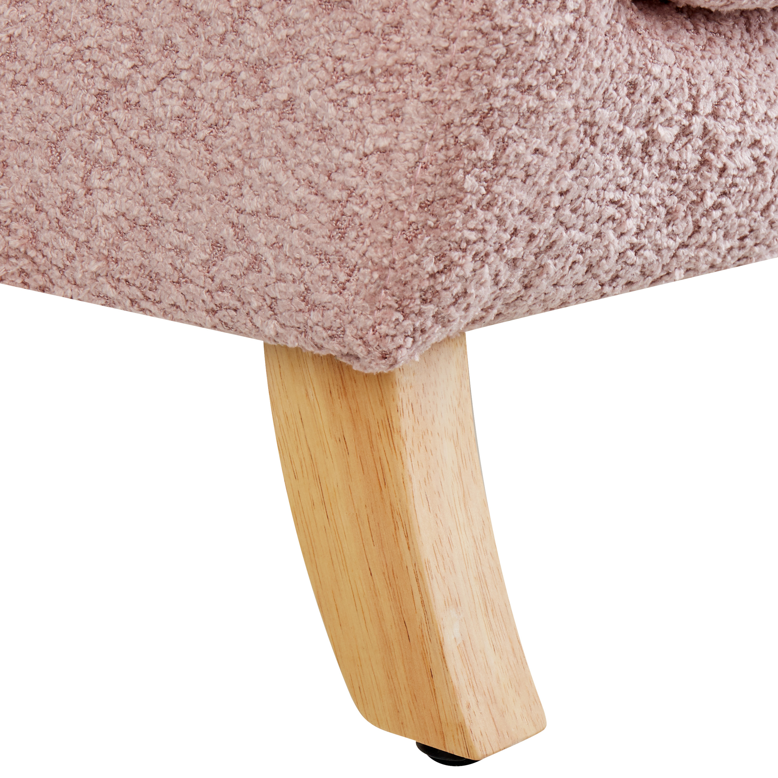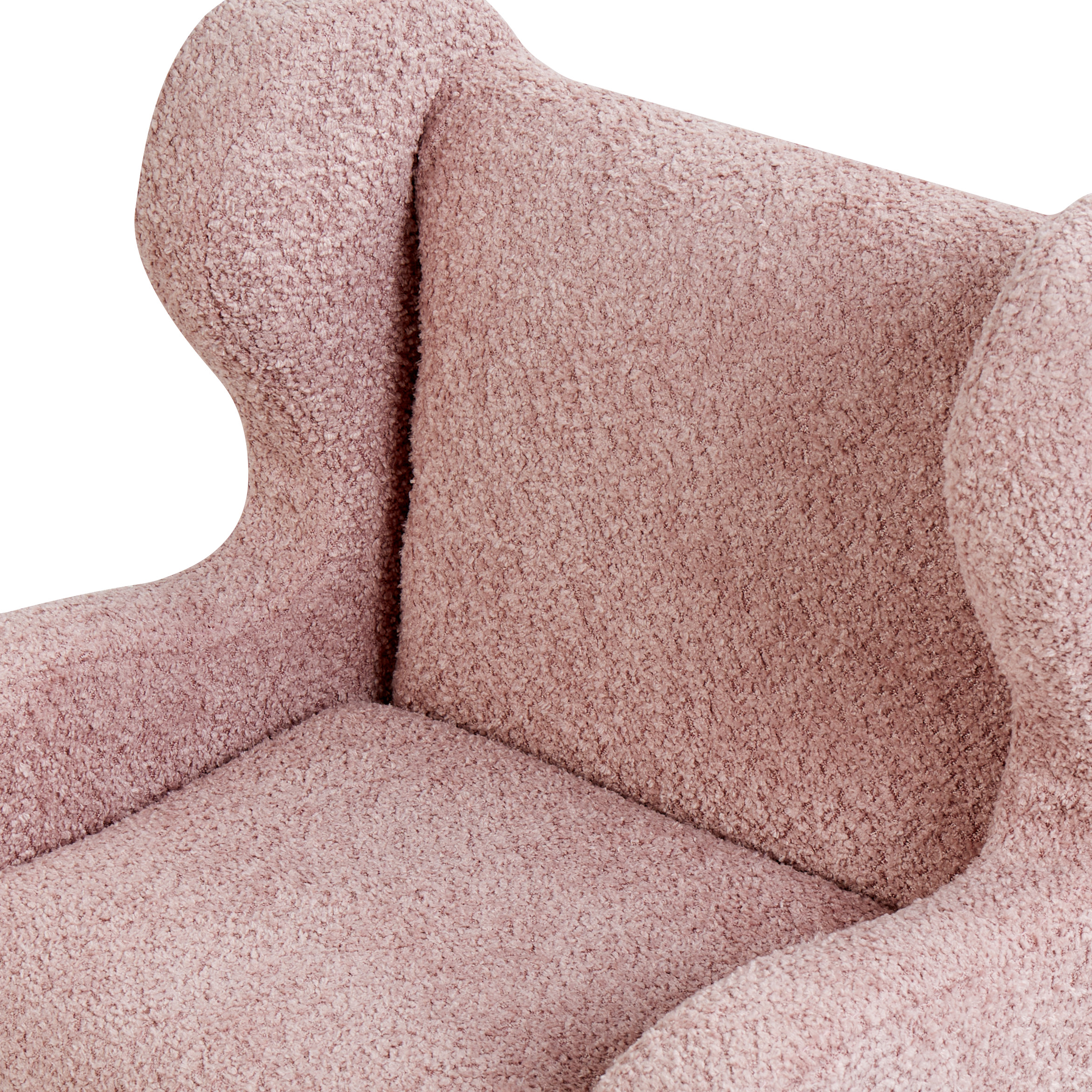 Gemütlicher, rosafarbener Ohrensessel für Kinder. Mit diesem Bouclé-Sessel schenken Sie Ihren Kleinen ein passendes Sitzmöbel, das sie nicht nur beim Fernsehen begleitet, sondern ihnen auch als Spielgefährte dienen kann. Die angenehm weiche Stoffpolsterung sorgt für eine haptische Freude, die garantiert ein Lächeln auf das Gesicht Ihrer Sprösslinge zaubert. Die dicke Schaumstoff-Füllung gibt Ihrem Kind das Gefühl, auf einer Wolke zu sitzen, während die robusten Holzbeine den Polstersessel sicher für jedes kleine Abenteuer machen. Der Sessel ist erstaunlich leicht und kann problemlos zwischen verschiedenen Räumen hin- und hergeschoben werden, sodass er vielseitig in Ihren Wohnbereichen einsetzbar ist.