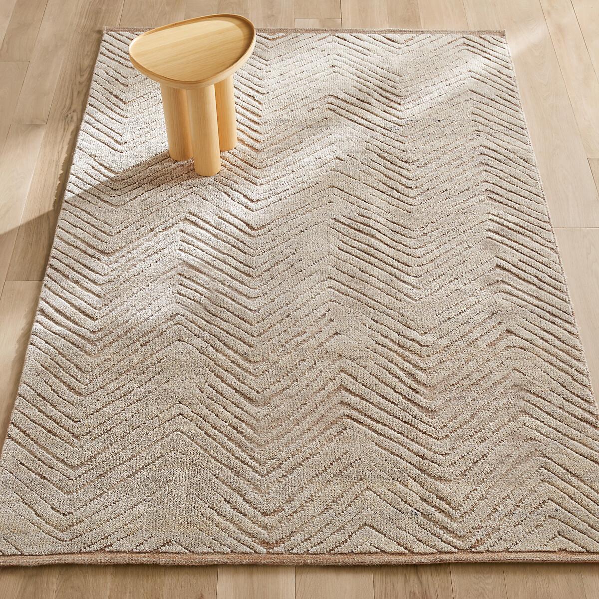 Das Reliefmuster, das von einigen farbigen Details belebt wird, entsteht durch längere Fäden, die in eine dunklere flachgewebte Unterlage eingeknüpft werden. Nykare wirkt schalldämmend und wärmeisolierend. Ein vielseitig verwendbarer Teppich von AM.PM. Beschreibung