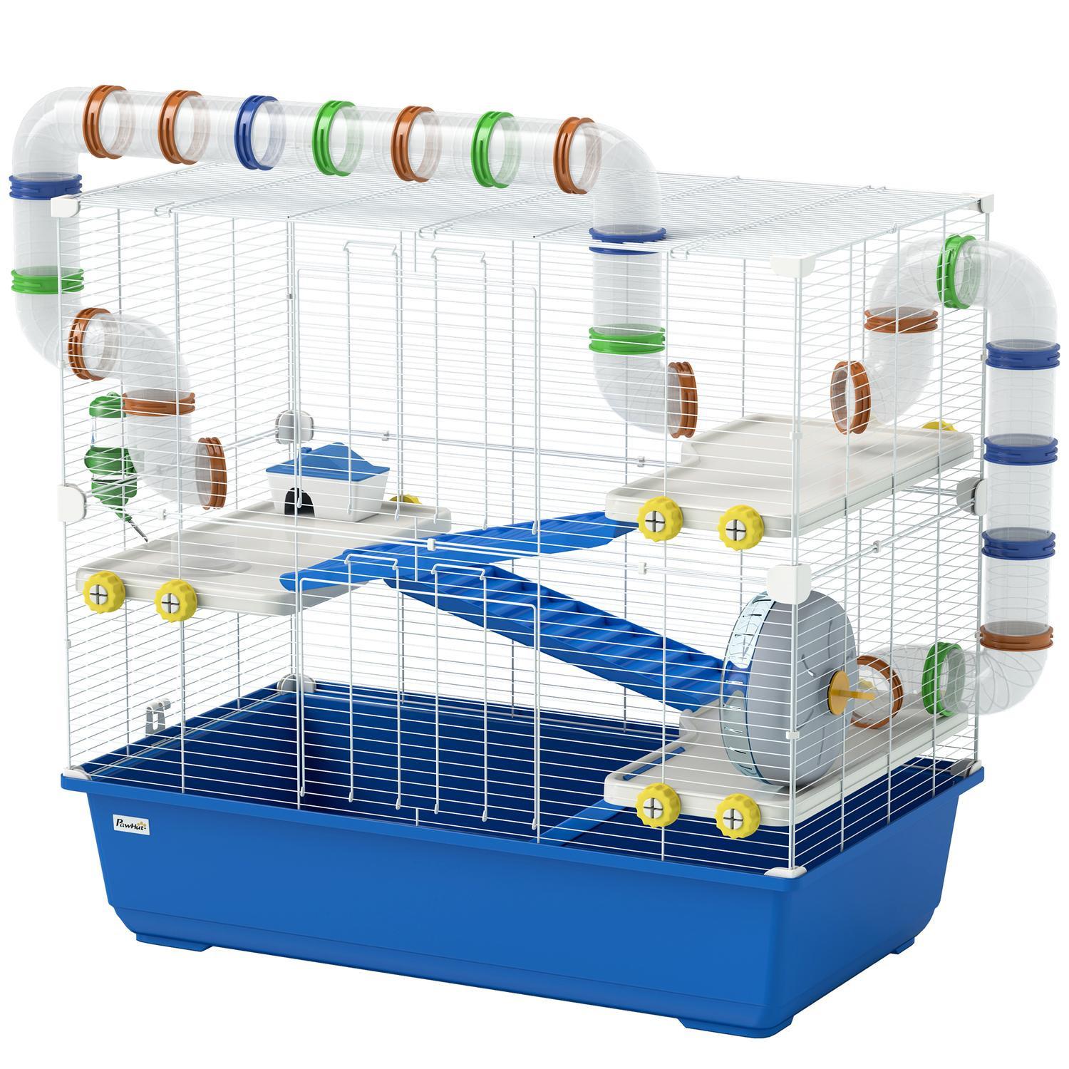 Northio Hamsterkäfig für Zwerghamster 4 Etagen Nagerkäfig Kleintierkäfig mit Laufrad Futternapf und Zubehör, groß Mäusekäfig Käfig 78 x 45 x 73 cm Blau
