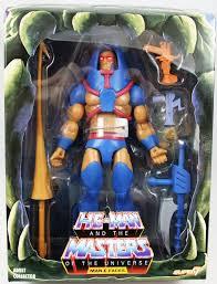 Perhaps the greatest actor on Eternia, Perkaedo, the Master of Disguise, performed before King Randor and Queen Marlena at Prince Adam's 18th birthday celebration. It was here that he drank a magic potion, created by Skeletor, that transformed him into a terrible monster with great strength loyal only to evil. With the help of He-Man and the Sorceress, Perkaedo was cured from this transformation, but the process left him forever split between not just two, but three personalities. He now uses his powers to protect justice in his greatest role, as Man-E-Faces, the man who is three warriors in one--fighting as a human, robot, or monster.