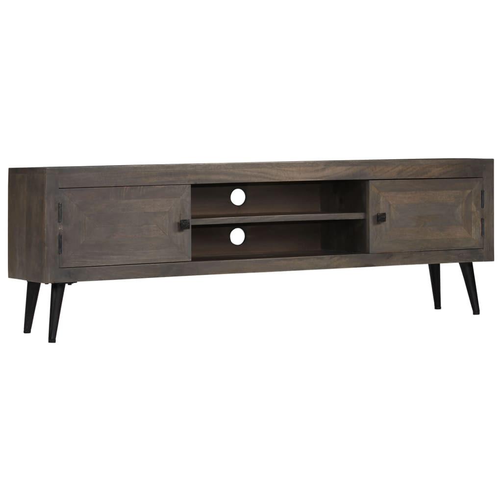 Dieser TV-Schrank aus lackiertem Massivholz ist sowohl eine dekorative als auch eine praktische Ergänzung zu deinem Interieur. Er kann auch als Sideboard oder Beistellschrank verwendet werden. Dieser Schrank ist aus Mangoholz handgefertigt, das robust, stabil, langlebig und optisch ansprechend ist. Die Handwerkskunst trägt zu seinem spektakulären Retro-Stil bei. Jeder Schritt des Fertigungsprozesses wird mit größter Sorgfalt ausgeführt, sei es Polieren oder Lackieren. Die Handwerkskunst und die schöne Holzmaserung machen jedes Möbelstück zu einem Unikat. Der Schrank verfügt über eine robuste Oberplatte, auf der Dekoartikel wie Obstkörbe oder Vasen Platz finden. Mit 2 Ablagen und 2 Fächern versehen, schafft das Sideboard auch reichlich Stauraum, um verschiedene wichtige Sachen übersichtlich und griffbereit zu verstauen. Dank der Aussparung an der Rückseite lassen sich Kabel außer Sicht halten. Die Stahlbeine verleihen ihm Stabilität und tragen auch zu seinem markanten industriellen Stil bei. Der Zusammenbau ist leicht. Wichtiger Hinweis: Farben und Maserungen können von Möbelstück zu Möbelstück variieren, was jeden unserer TV-Schränke zu einem Unikat macht. Die Lieferung erfolgt in zufälliger Reihenfolge, was die Exklusivität und Individualität deines Produkts gewährleistet.Material: Massives Mangoholz + pulverbeschichtete StahlbeineAbmessungen: 140 x 30 x 45 cm (L x B x H)Mit 2 Fächern und 2 AblagenPoliert und lackiertEinfacher ZusammenbauLegal Documents: Deklaration von Massivholz