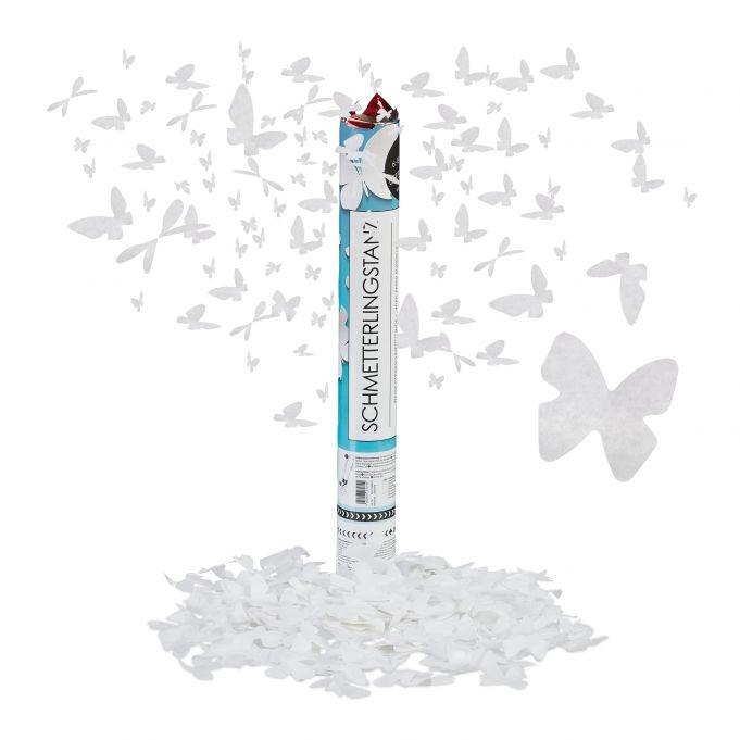 Die Konfettikanone schafft mit eleganten weißen Schmetterlingen eine magische Atmosphäre perfekt für Hochzeiten und romantische Anlässe. Verwandeln Sie jede Feier mit flatterndem Konfetti in ein unvergessliches Erlebnis.